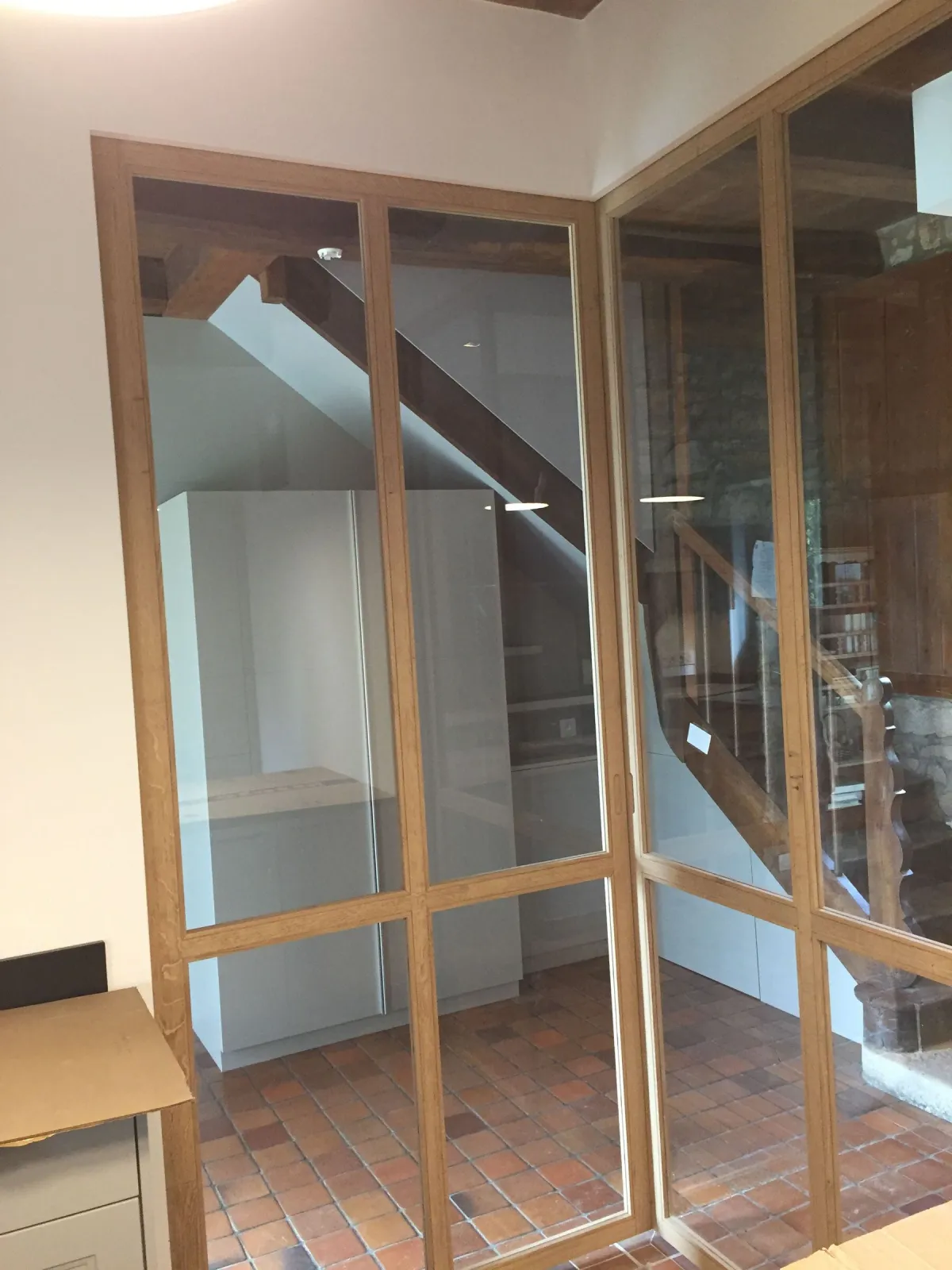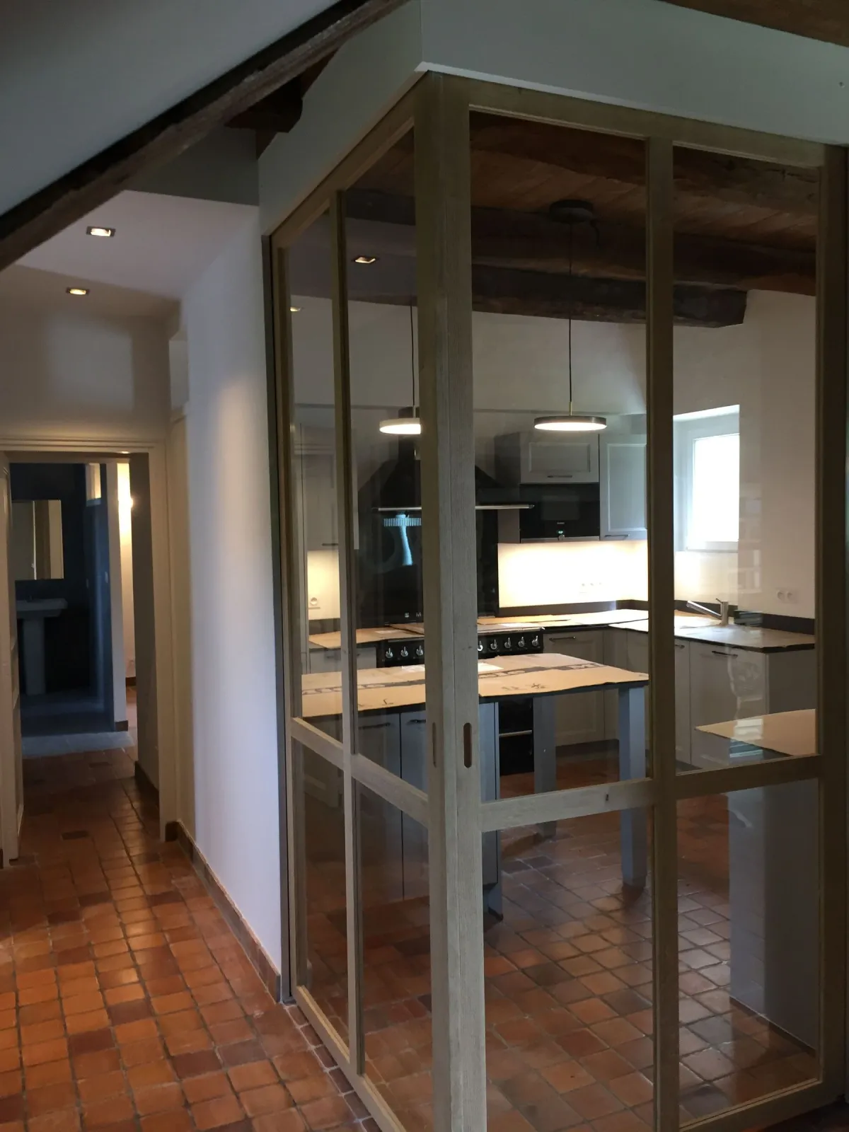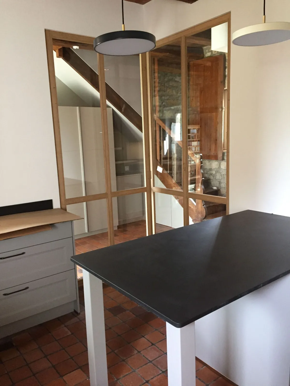 Rénovation d'une maison de campagne du XIXe, en maintenant le caractère fort d'une habitation en pierre, avec une ambiance douce et chaleureuse.