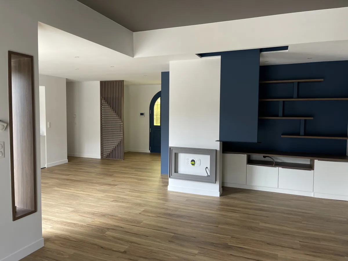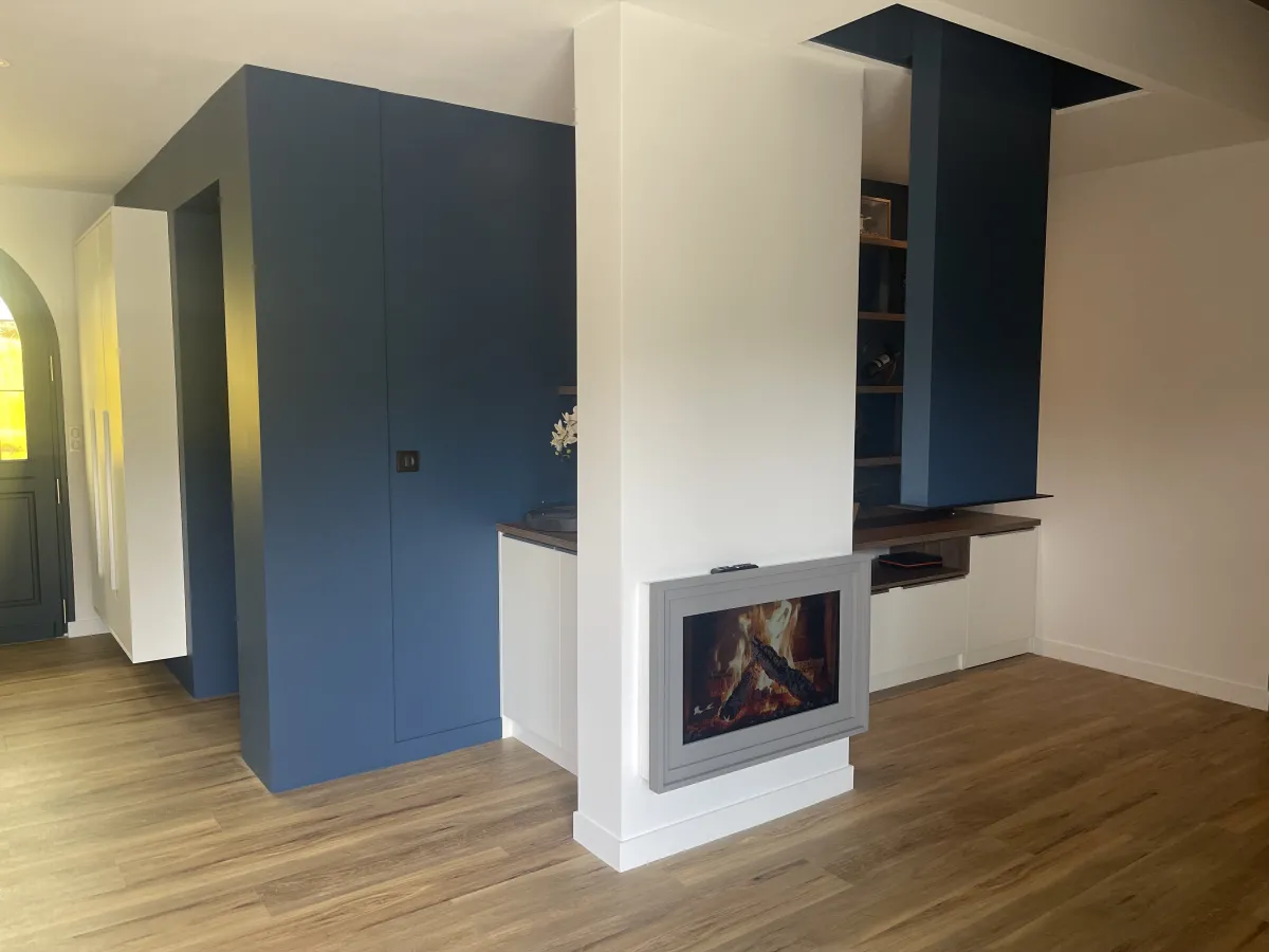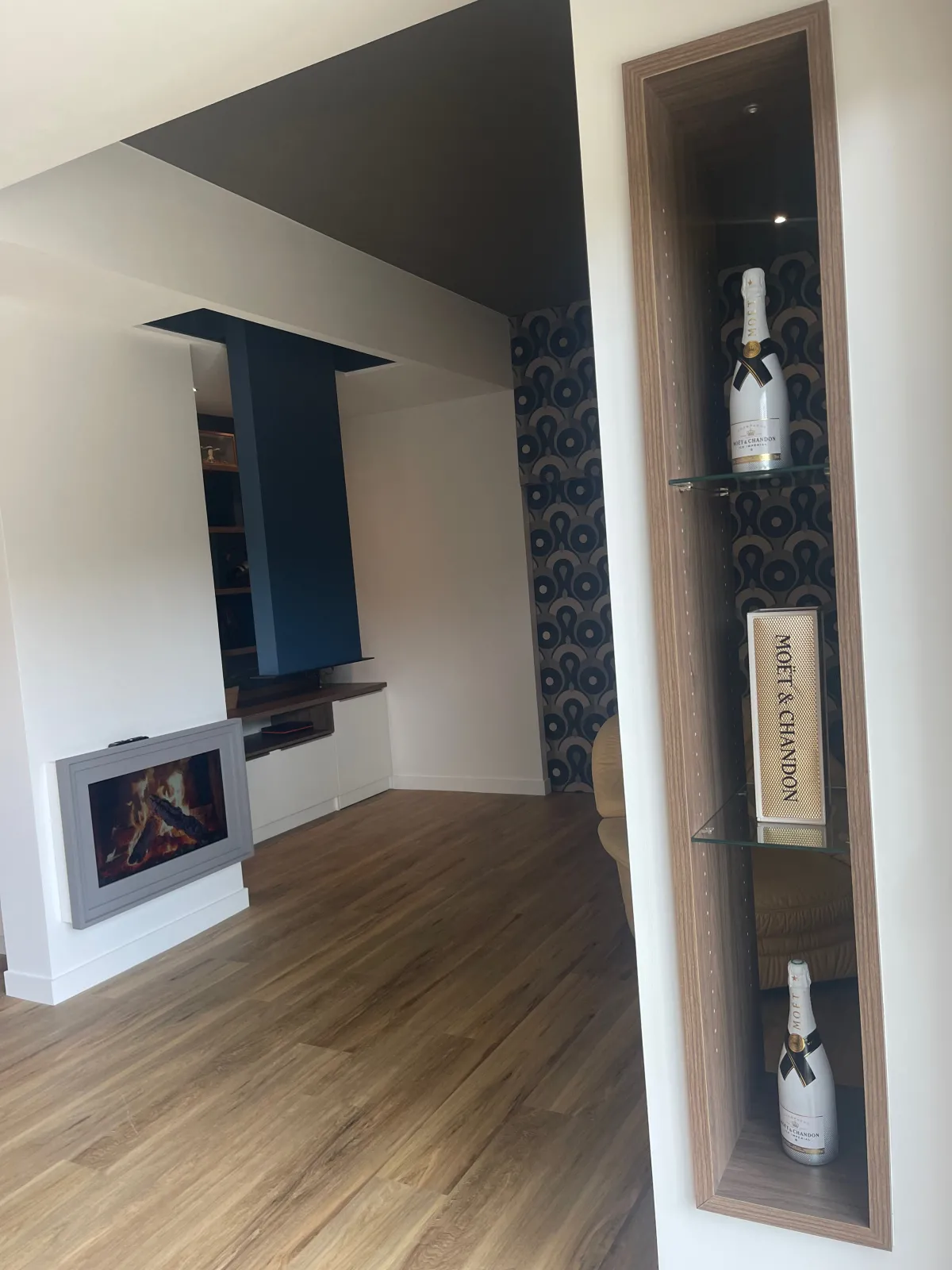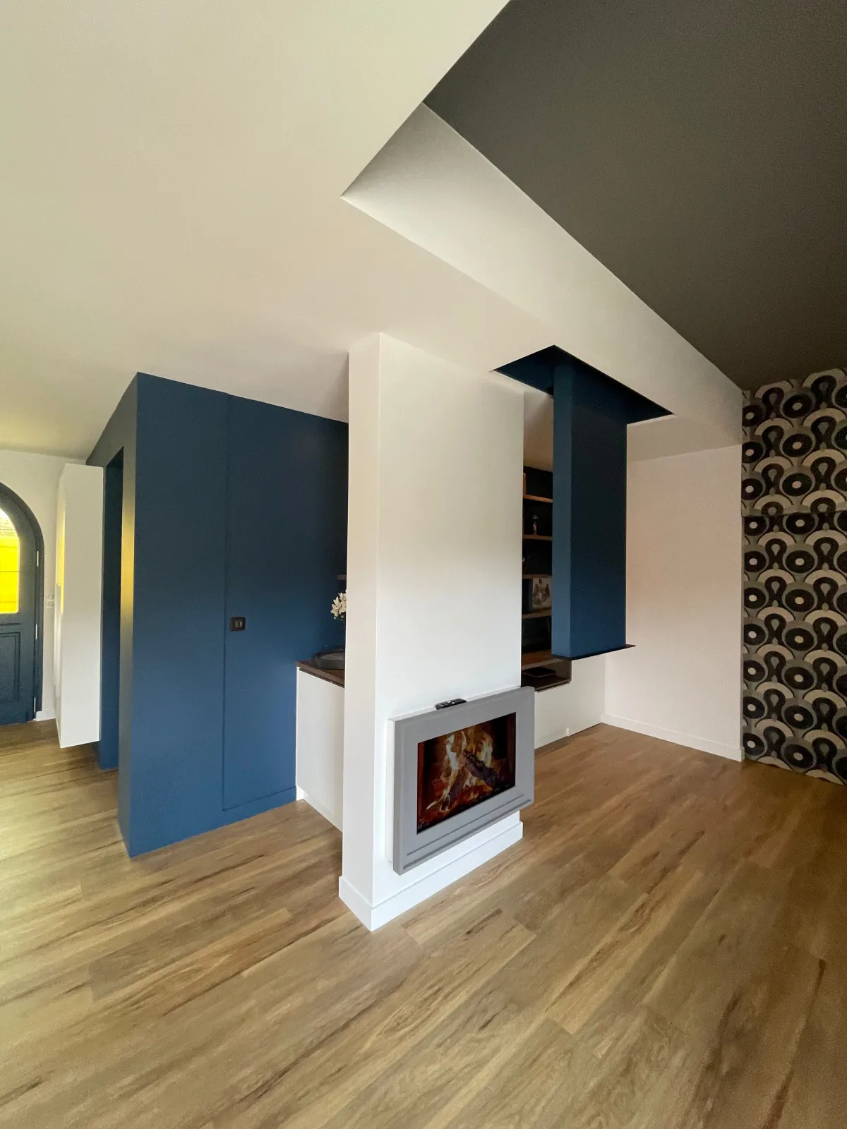 Aménagement d'une habitation classique afin de la rendre plus contemporaine par le biais d'agencements, de jeux de couleurs et matériaux