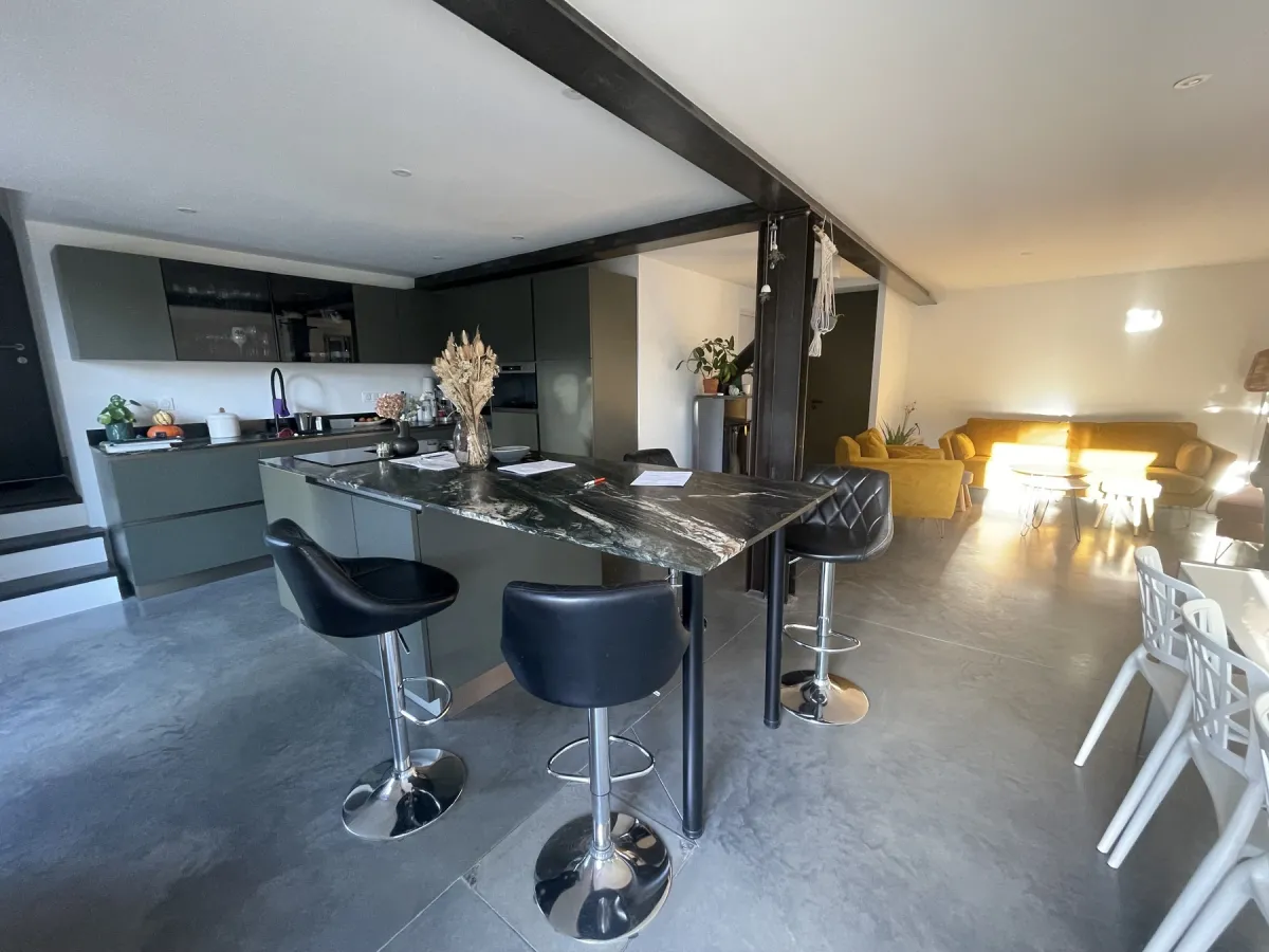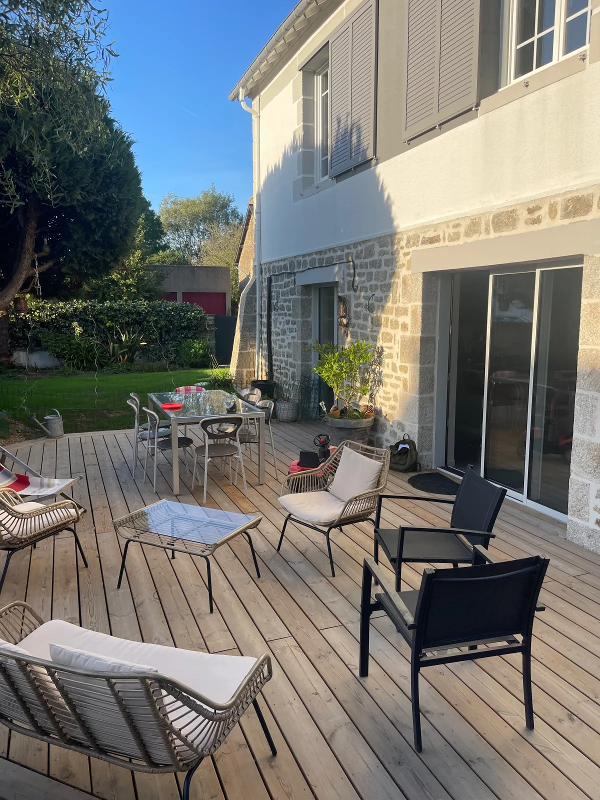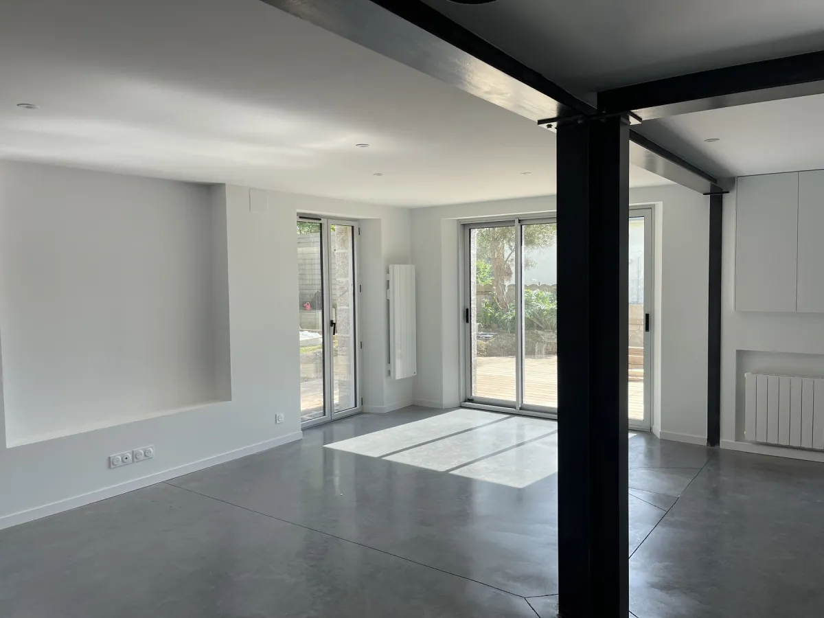Réorganisation totale de la fonctionnalité d'une maison dans sa verticalité, afin de restituer l'accès de plein pied les pièces de vie au jardin.