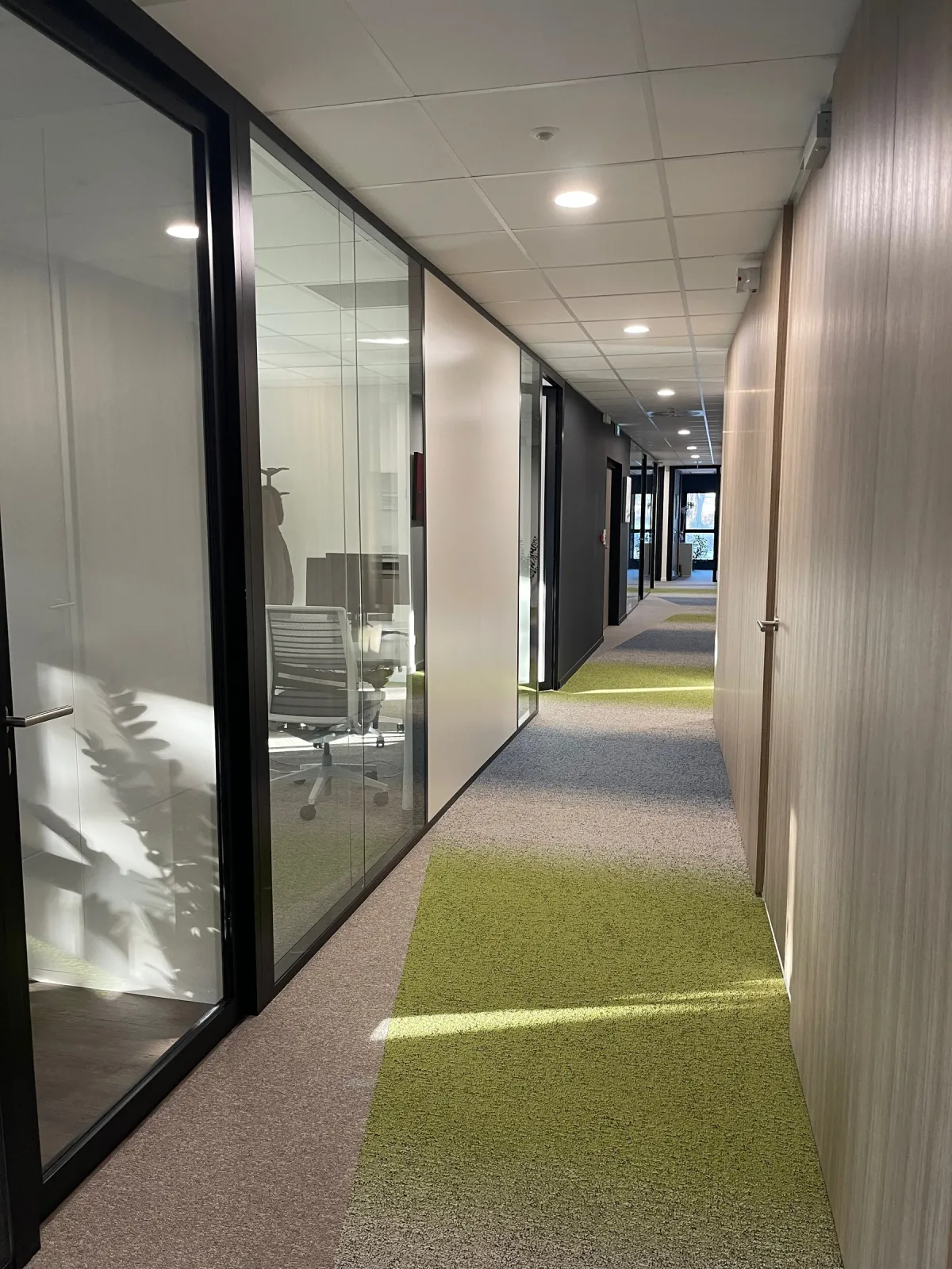 Conception et suivi de chantier pour la redistribution et aménagement d'un plateau de bureau.