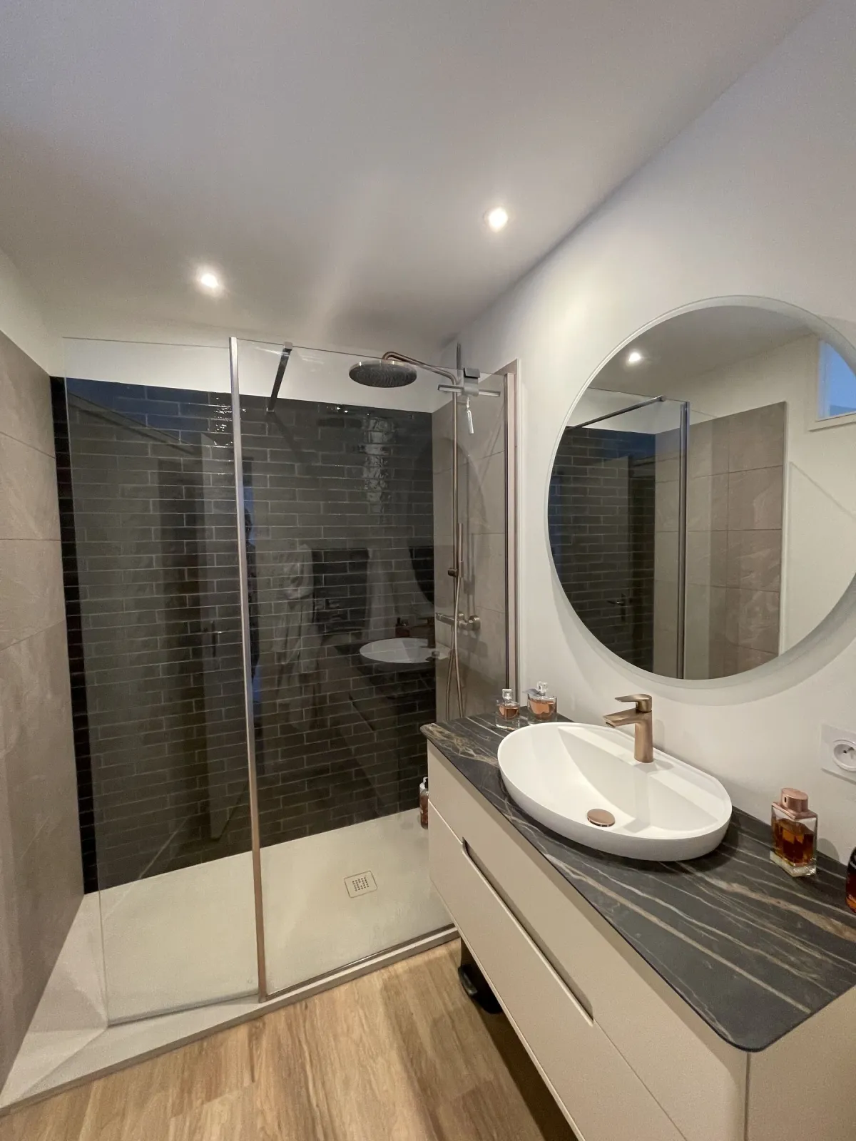 Rénovation d'un appartement de famille, en restructurant l'espace afin de restituer la lumière et la vue mer, avec style et design.