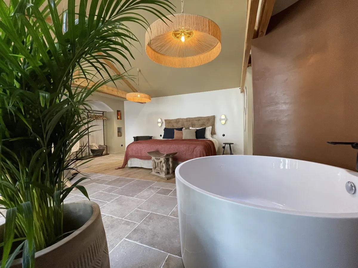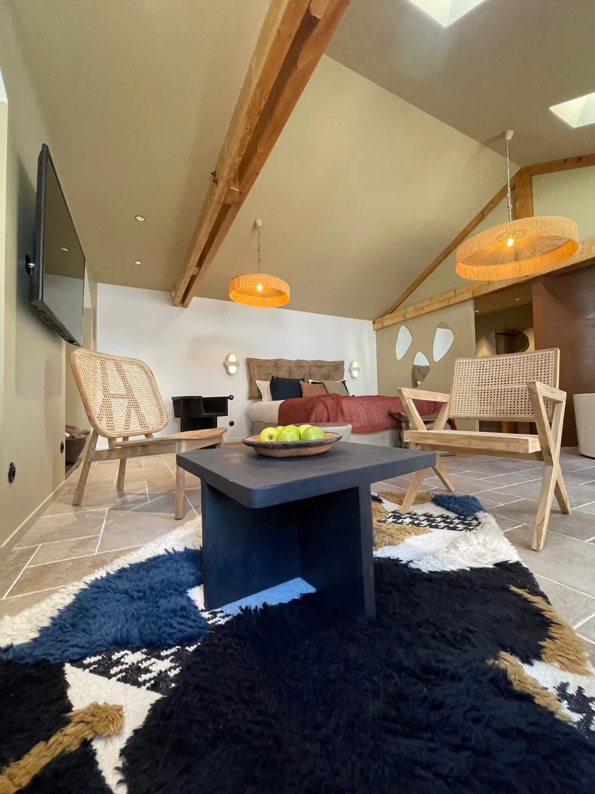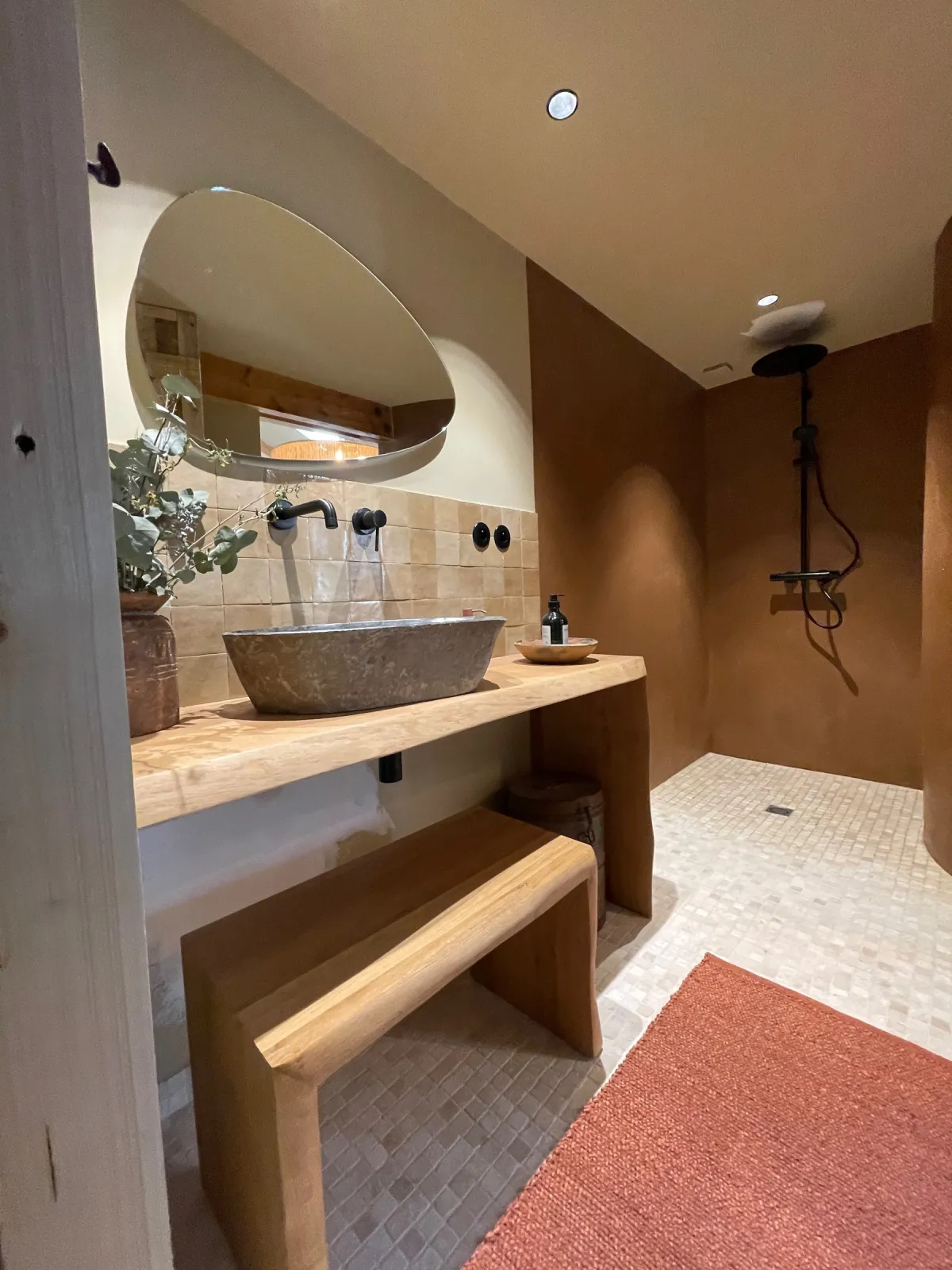 Ambiance ethnique chic, avec des produits et matériaux naturels à consonance exotique,africaine.
